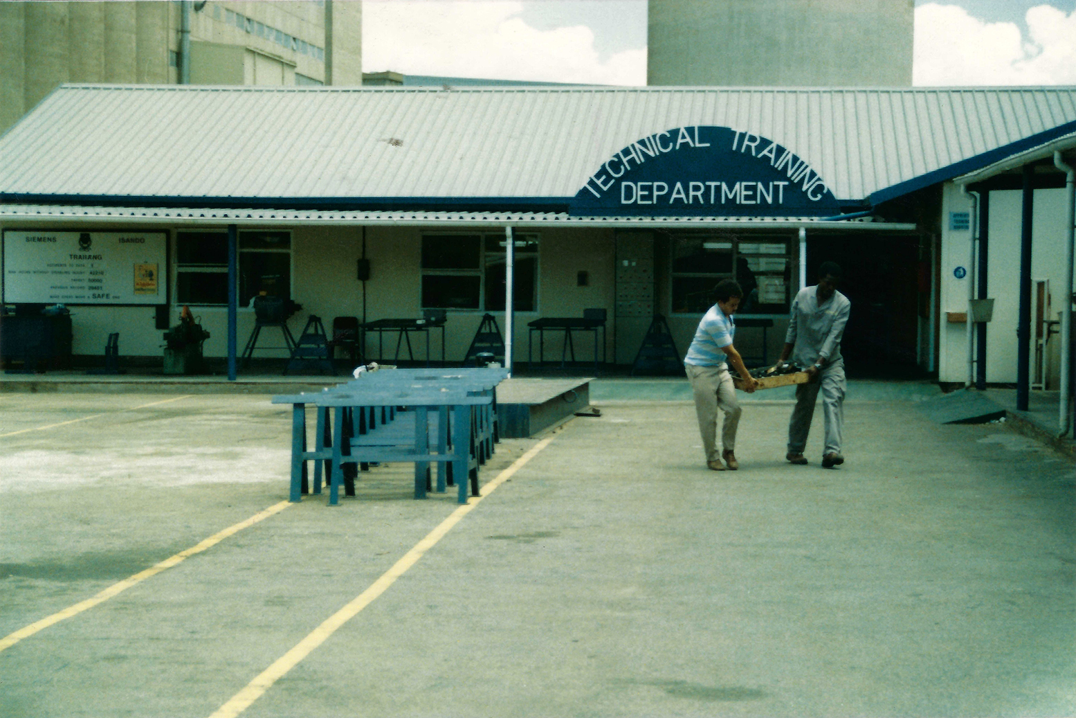 Founder - Peter Seymour(stripe t-shirt) - Training his apprentices - 1991